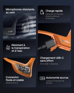 - Doubles transducteurs, un son de qualité – Découvrez l’OpenRun Pro 2, le tout nouveau casque phare de Shokz qui redéfinit l’audio à oreille ouverte grâce à la technologie Shokz DualPitch. Cette innovation combine un haut-parleur à conduction osseuse et un haut-parleur à conduction aérienne, offrant une expérience d’écoute à la fois claire et puissante.