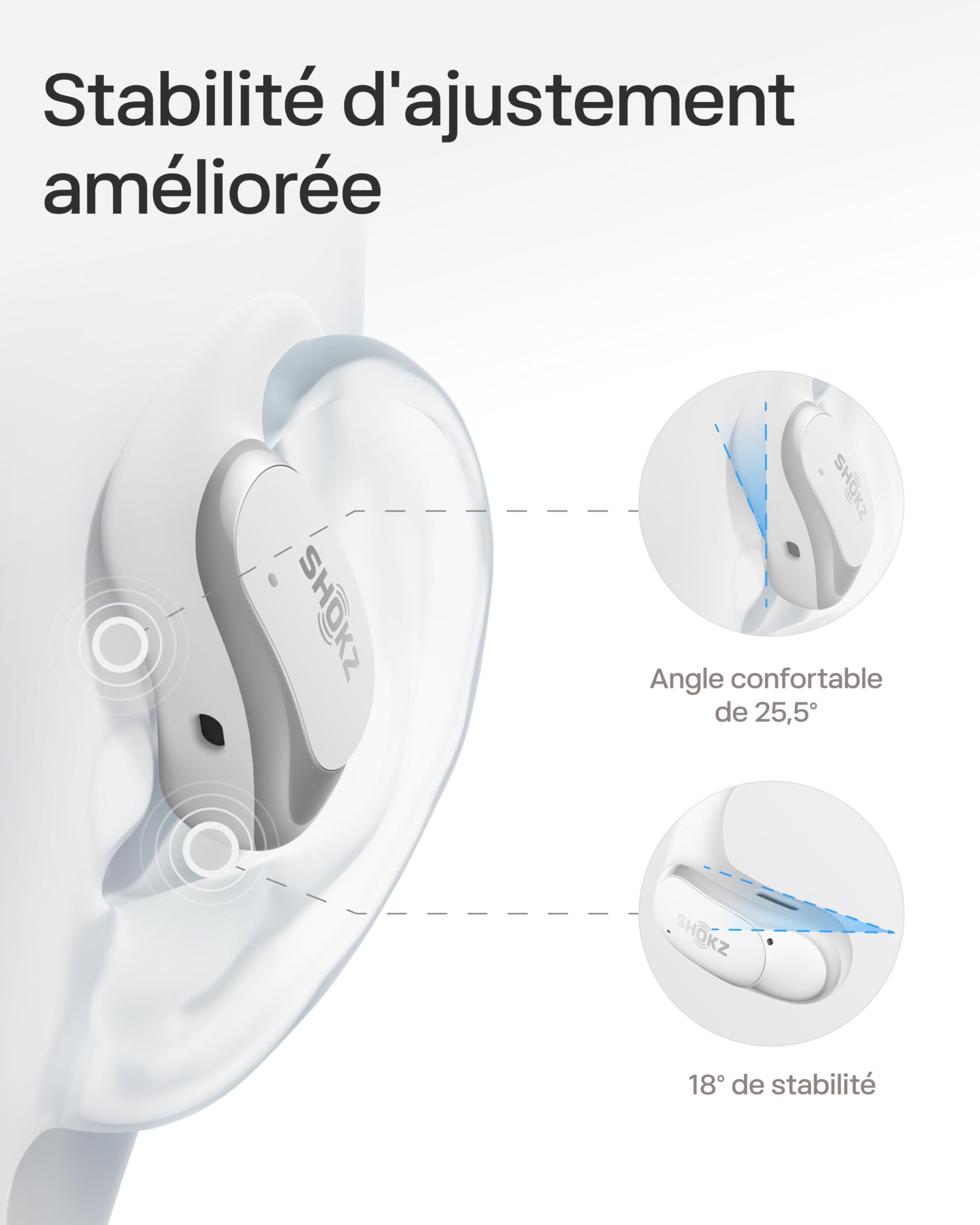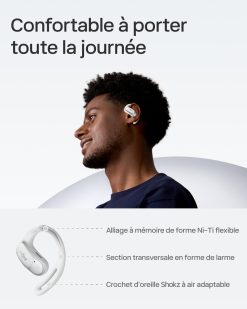 - Conception à oreilles libres pour un confort garanti : OpenFit Air hérite de la conception à oreilles libres de Shokz, pèse seulement 8,7 g et vous offre confort et une stabilité d’ajustement améliorés. Vous trouverez la paire qui correspond à votre style parmi 3 options de couleurs.