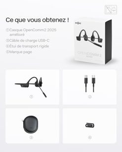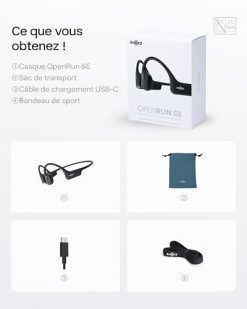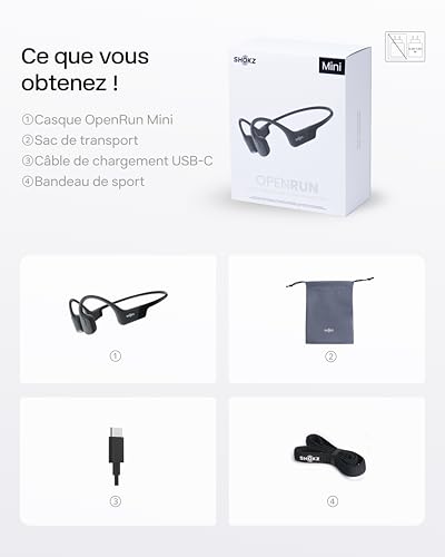 SHOKZ OpenRun Mini Casque à Conduction osseuse, écouteurs Bluetooth Oreilles Libres pour Le Sport avec Micro, Casque sans Fil étanche IP67, 8 Heures d’autonomie, USB-C, Bandeau de Sport, Noir