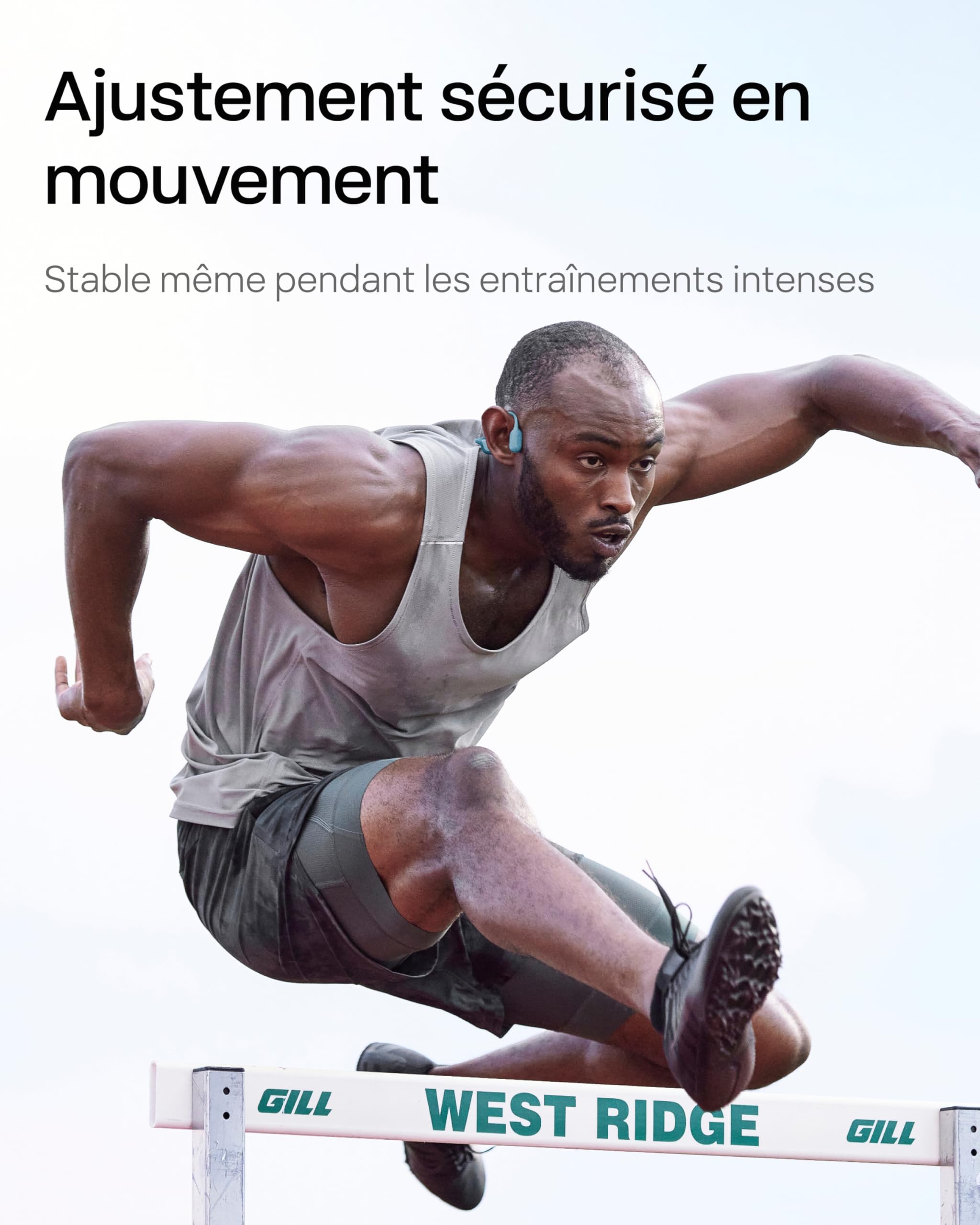SHOKZ OpenRun Pro Casque à Conduction osseuse, écouteurs Bluetooth oreillles Libres pour Le Sport avec Micro, Casque sans Fil étanche IP55, 10H d’autonomie, Bandeau de Sport, Bleu